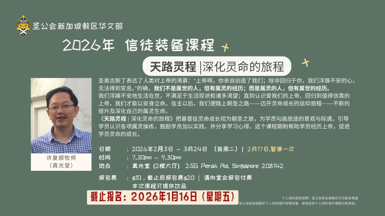 报名费:$10, 截止后$20 | 截止报名:2026年1月16日