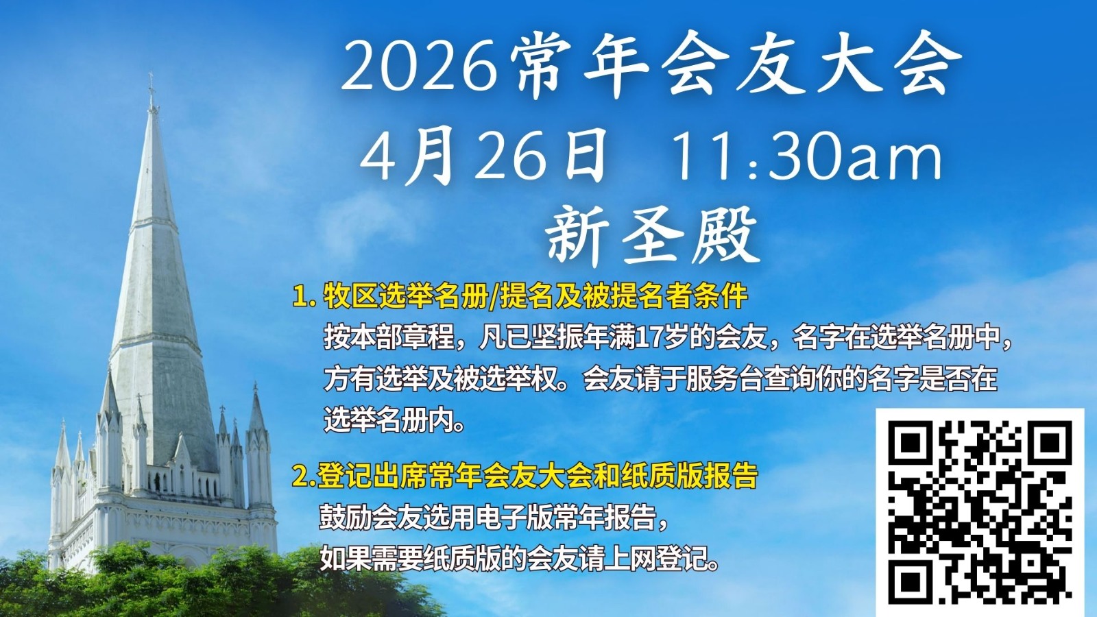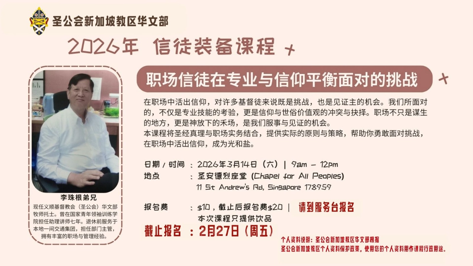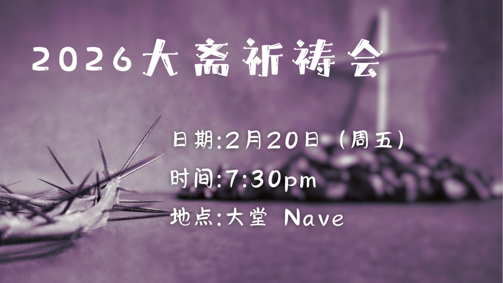 日期:27/2 - 27/3 每周五(13/3 敬拜祷告会)