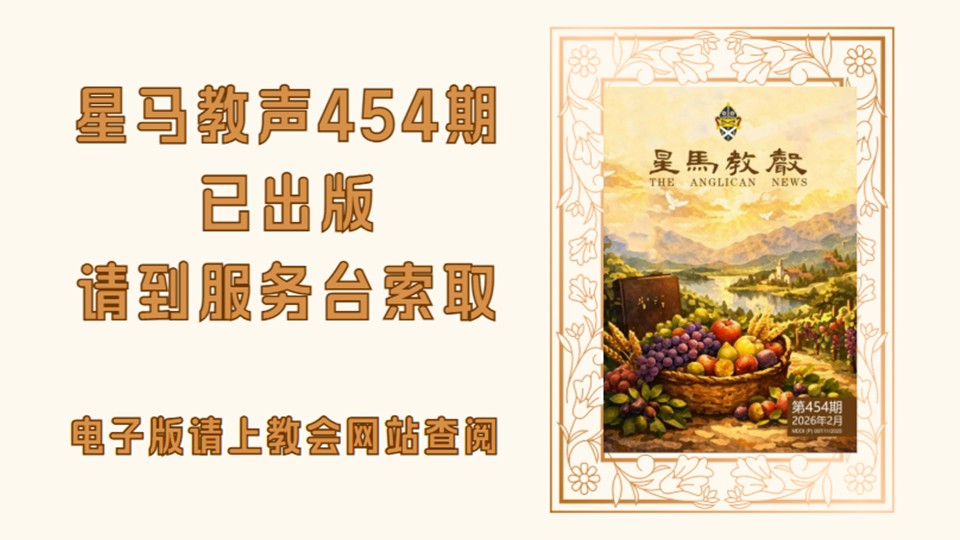请在崇拜后到服务台索取第453期《星马教声》