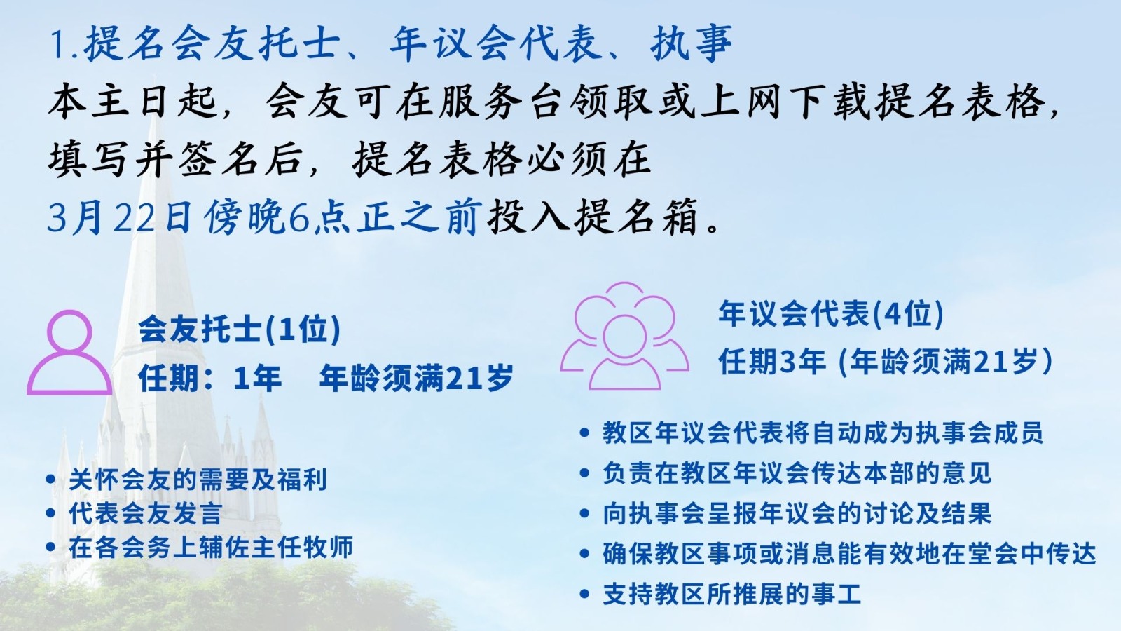 会友托士,年议会代表,执事提名