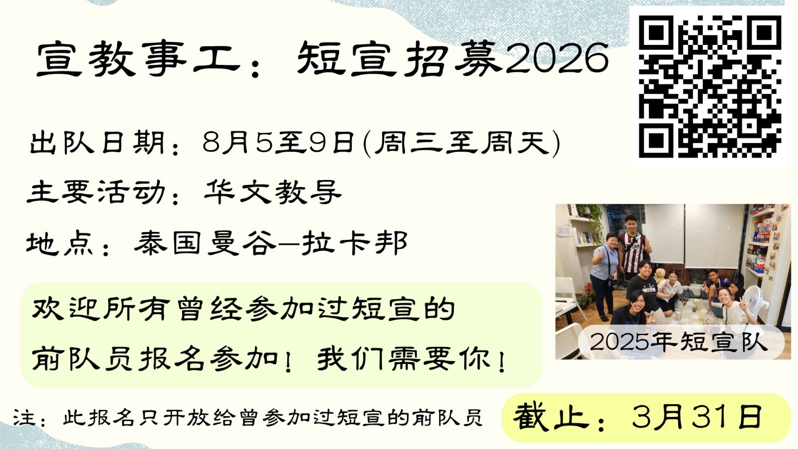 宣教事工短宣招募 2026