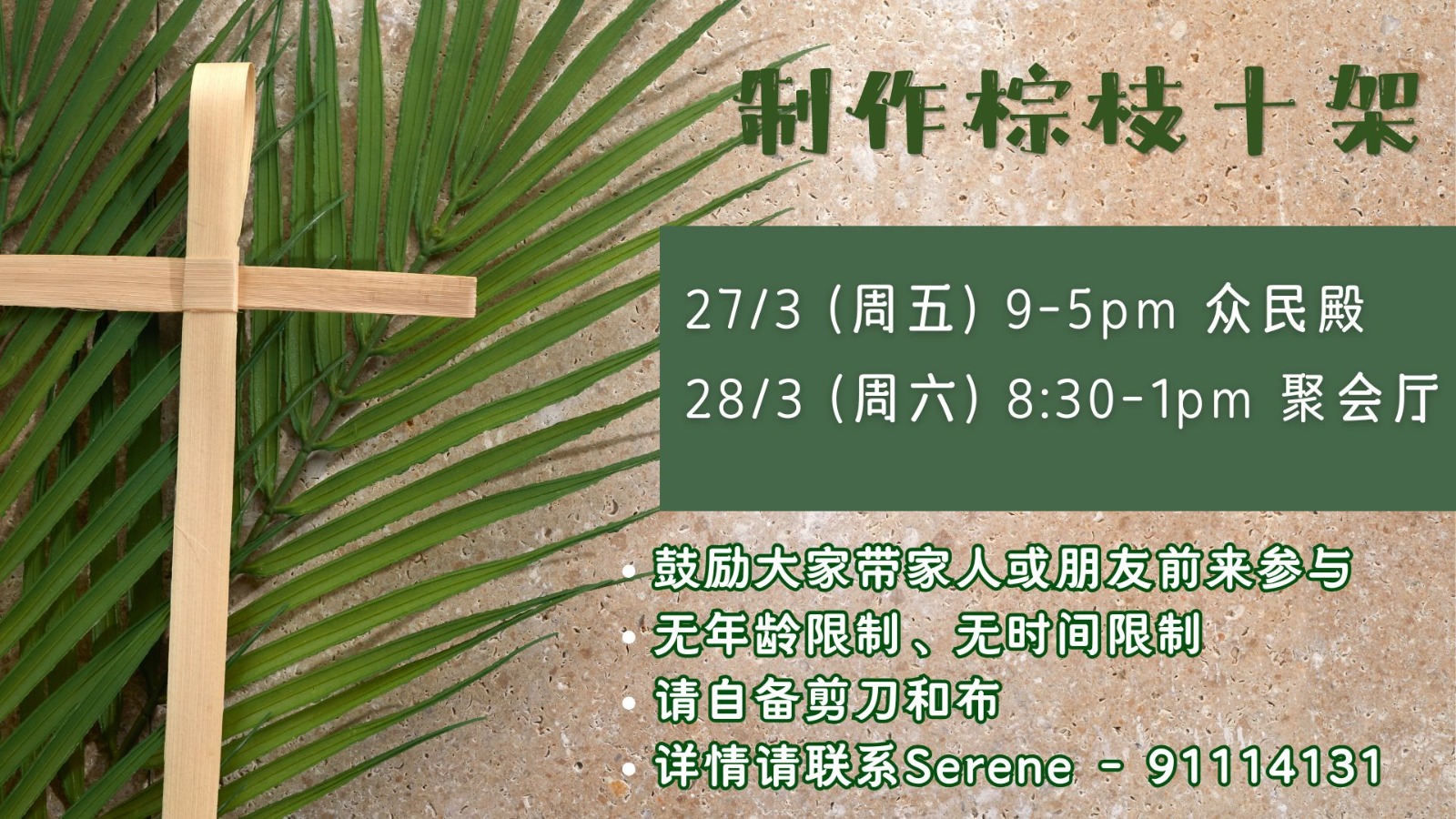 28/3 (周六)8:30am-1pm 聚会厅